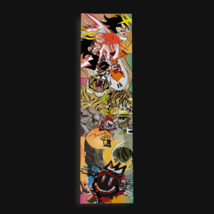 Tabla de skate de la colección de 2022. El modelo aparece leyendo el cómic «Lobo el último czarniano». El homenaje al artista es a Jean Michel Basquiat, y se replican las obras «Acidquiat», «Trumpet» y «King Pleasure».